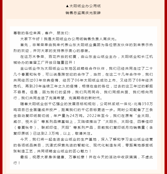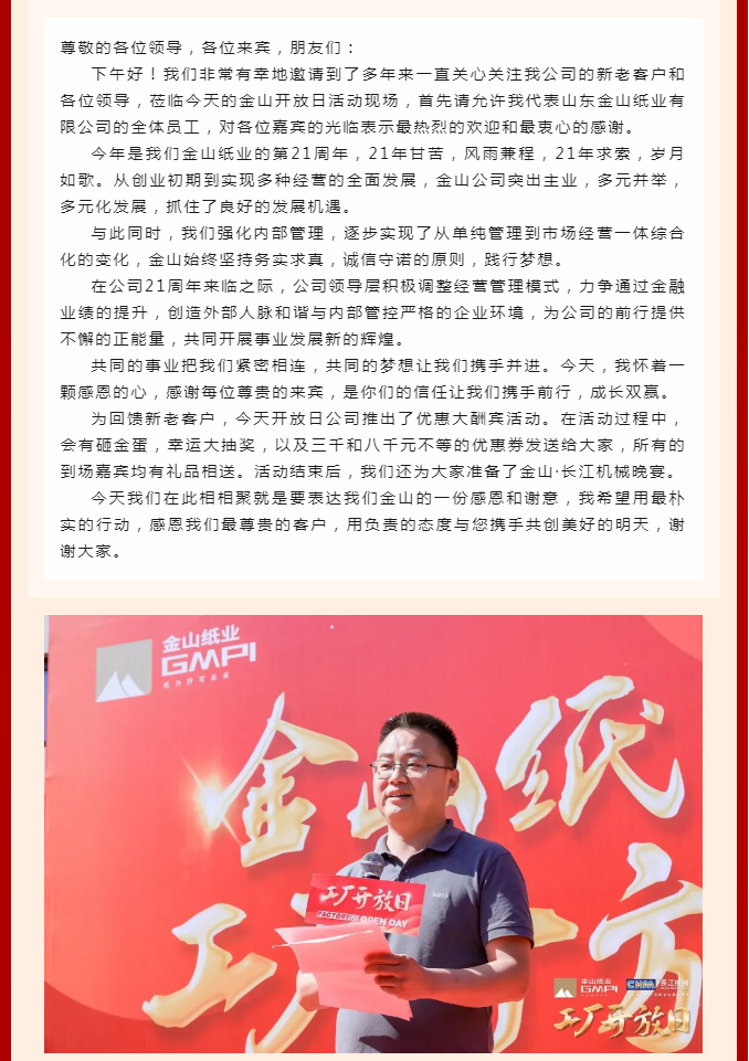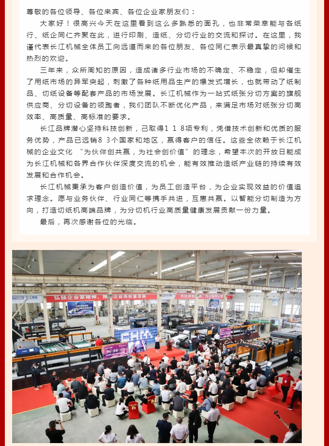 攜手并進(jìn) 共創(chuàng)未來丨熱烈祝賀金山紙業(yè)?長(zhǎng)江機(jī)械工廠開放日?qǐng)A滿舉辦